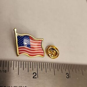 Show your American pride with this stunning lapel pin featuring the iconic stars and stripes of the United States flag. Made in the USA, this pin is a perfect accessory for any patriotic occasion. The pin is brand new and has never been used.