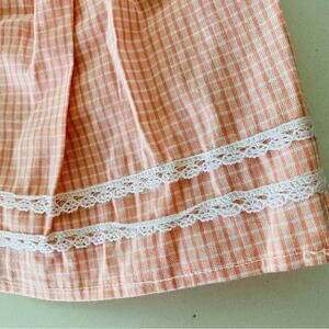 AMERICAN GIRL DOLL Peach Pink Plaid Checkered Dress Ribbon Tie Bonnet Hat Lace