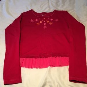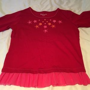 Excellent Condition .. Has cute light pink ruffle on bottom of shirt. 100% Cotton. Shirt says L 14/16 but I think it runs a little small and could fit size 12.