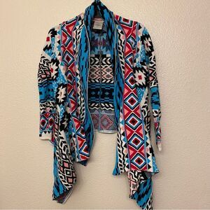 AMERICAN GIRL Kayla Aztec Print Shawl Collar Open Front Cardigan sweater 10-12