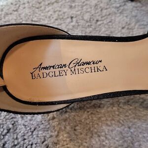 AMERICAN GLAMOUR BADGLEY MISCHKA GLITTER JEWELED ZIP BACK HEELS SZ 9