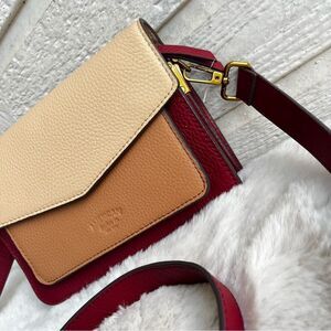 AMERICAN LEATHER CO. Troy Colorblock Red Accordion Flap Crossbody