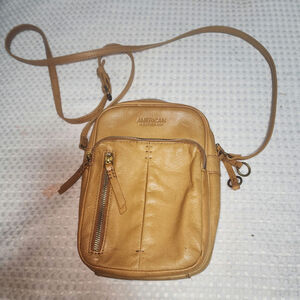 AMERICAN LEATHER EUC CLEVELAND NORTH/SOUTH LEATHER CROSSBODY BAG