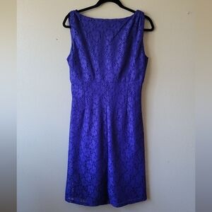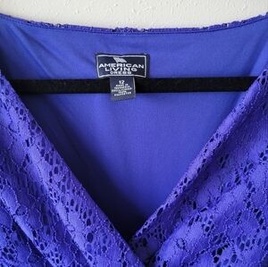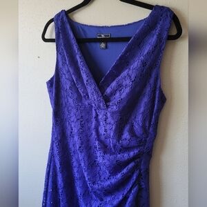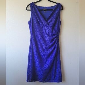 AMERICAN LIVING Blue Lace Dress Side Rouching Sleeveless Surplice sz 12