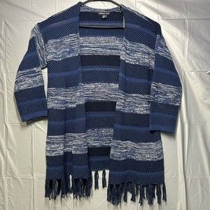 AMERICAN LIVING Cardigan Blue & White Striped Western Pattern Shawl Open Front