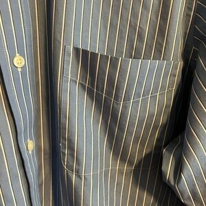 Blue and white striped American Living wrinkle free button down shirt. Gently used size 36/37. Color matches first photo.