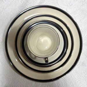 AMERICAN MANOR Ebony, Shenango- 5 Piece Place Setting, Black Band, Platinum Trim
