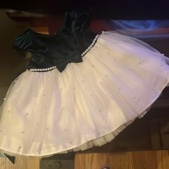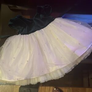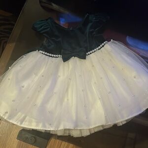American Princess dress with dark green velvet, tulle, and pearls.