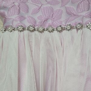 AMERICAN PRINCESS PINK AND WHITE FLORAL TULLE FANCY SLEEVELESS DRESS, SIZE 3T