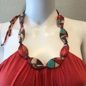 AMERICAN RAG CIE Dress Burnt Orange Large Boho Halter Top Mini Distressrd Chic