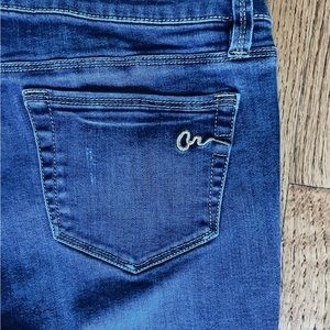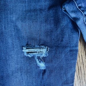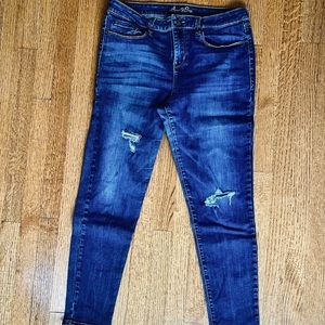 So comfortable distressed denim from American Rag brand. Has a bit of stretch to the fabric. Comes from a pet and smoke free home.