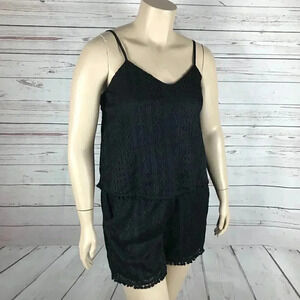 AMERICAN RAG Plus Size Pom Pom Trim Romper, Black, 0X