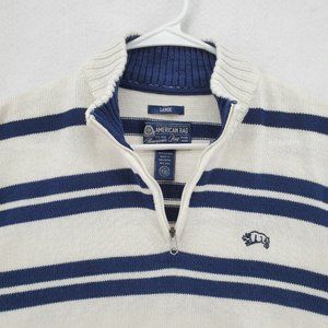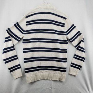 AMERICAN RAG Sweater Men's Long Sleeve Striped 1/4 Zip Pullover White Large