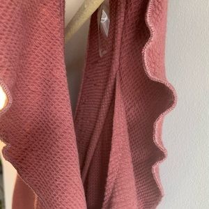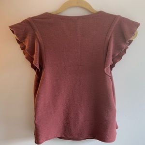 AMERICAN RAG preloved v-neck flutter sleeve top with front ruffle detail. Size is medium but fits like a small. Color is a deep pink.