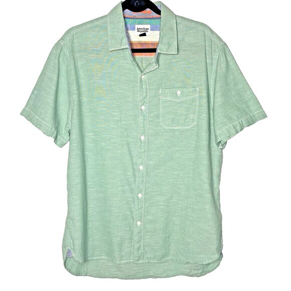 AMERICAN REPUBLIC Shirt Button Short Sleeve Lightweight 100% Cotton Mens L Green