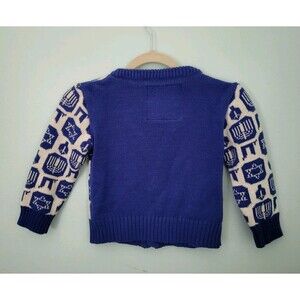 AMERICAN STITCH Hannukah Sweater Boy Girl 4T Menorah Blue White Cardigan