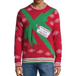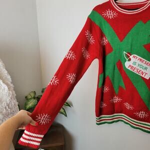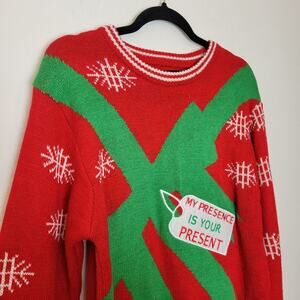 AMERICAN STITCH Red My Presence Is Your Present Ugly Christmas Sweater Sz L