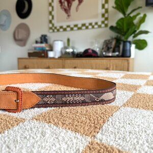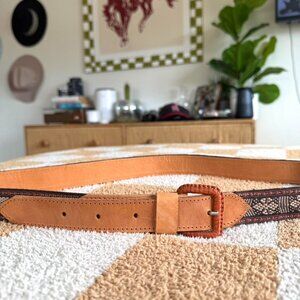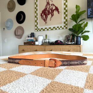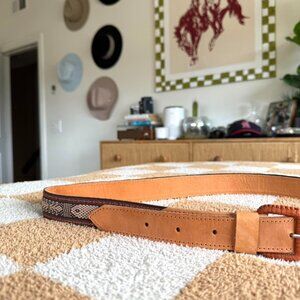 AMERICAN VINTAGE BROWN TAN LEATHER BELT STITCHING WESTERN MENS