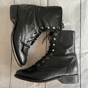 AMERICAN VINTAGE Laredo Boots Women's 6.5 Black Leather Kiltie Granny Roper USA