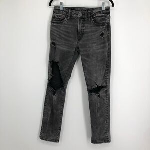 American Eagle Outfitters Next Level Flex Stretch Ripped Knee Slim Leg Jeans in Black Wash. Size mens 28x28.