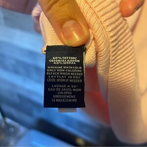 AMERICAN LIVING pink sweater with gray/white striped sleeves, Sz XL