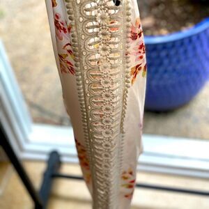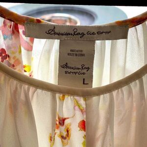 AMERICAN RAG CIE Semi Sheer Floral Chiffon Tie-Front Keyhole Lace Sleeve Blouse