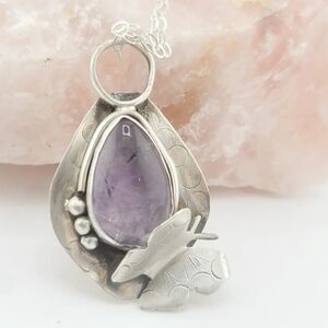 Beautiful butterfly pendant with a tear drop shape Amethyst, i have handmade in Sterling Silver metal from scratch. unique piece, one only.