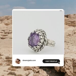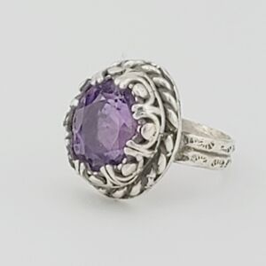 AMETHYST GEMSTONE OVAL SHAPE RING HANDMADE IN STERLING SILVER METAL SIZE 8.5
