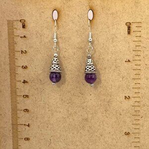 AMETHYST Silver Bali Style Handmade Bead Pierced Earrings LA123