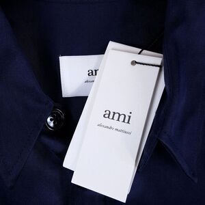 AMI ALEXANDRE MATTIUSSI Shirt Mens Medium Navy Satin Button Up Oversized Wool