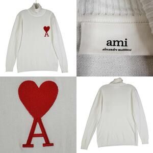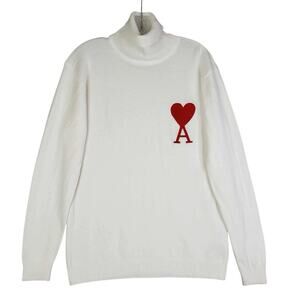 AMI Alexandre Mattiussi Ami de Cœur Sweater Off White Red Heart Turtleneck