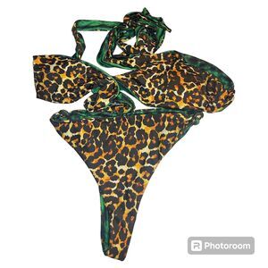 AMI CLUBWEAR Womens Size Large Leopard Print Reversible Green 2 Piece Bikini