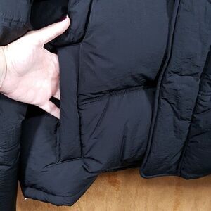 AMI Coat Mens Large Black Zip Up Hooded Oversized Puffer Down Jacket Logo $1495