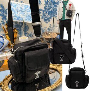 🆕 AMI PARIS 🧿 NWOT Tonal Heart Crossbody Pocket Bag, Black Nylon