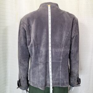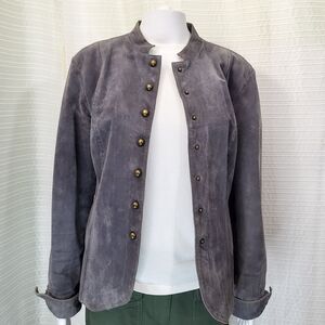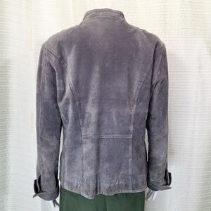 A.M.I. Short Suede Jacket w/ Brass Toned Snaps Gray Women's M/L