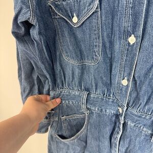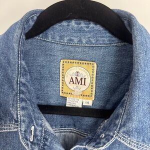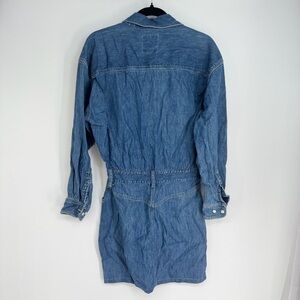AMI Vinatge 1990s Denim Collared Front Button Up Long Sleeve Mini Skirt Dress