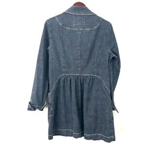 This AMI Women's Long Sleeve Button Up Denim Jacket in size L is a versatile and stylish addition to any wardrobe. Made from a comfortable cotton blend denim, the jacket features a solid blue color and a mid-length cut. With a classic button closure and long sleeves, it can be worn for casual outings, workwear, or even a party, making it a practical and fashionable choice for year-round wear. The jacket also includes pockets for added functionality. Perfect for any season, this denim jacket is a timeless and essential piece for any woman's closet.