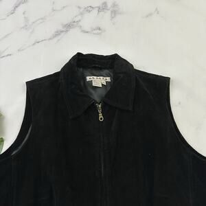 AMI Womens Vintage Y2k Suede Vest Size XL Black Zip Up Western Leather
