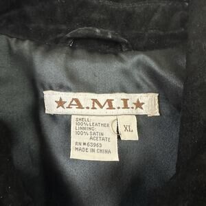 AMI women's vintage y2k black suede zip up vest, size XL. It is free from any rips or stains. It measures about 42 inches around the bust and is about 24 inches long.