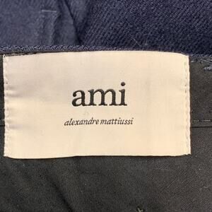 AMI by ALEXANDRE MATTIUSSI in a navy wool twill featuring a flat front, straight leg, and zip fly closure.
