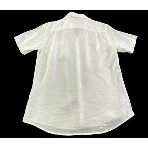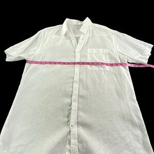 AMIANI 100% Linen Shirt Short Sleeve Button Front Collard White L 77-32