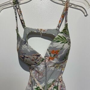 AMIANI Women's Multicolor Floral Built-In Bra Open Back One Piece Swimsuit Large