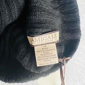 AMICALE Cashmere Genuine Shearling Pompom Beanie Hat, Color: Black, One Size NWT