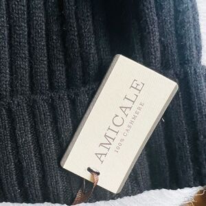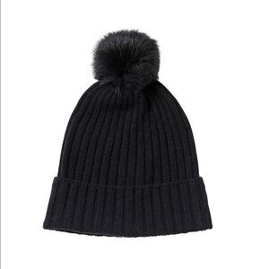 AMICALE Cashmere Genuine Shearling Pompom Beanie Hat, Color: Black, One Size NWT