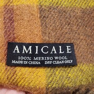 AMICALE merino Wool Plaid Unisex Fringe Scarf