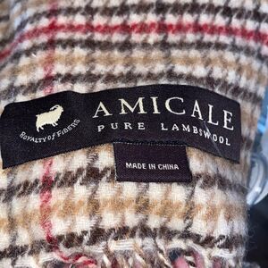 AMICALE Lambswool Tan Plaid Scarf