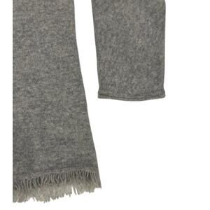 AMICI Pure Gray Grey V Neck 100% Cashmere Fringe 3/4 Dolman Sleeve Sweater SMALL