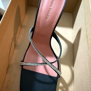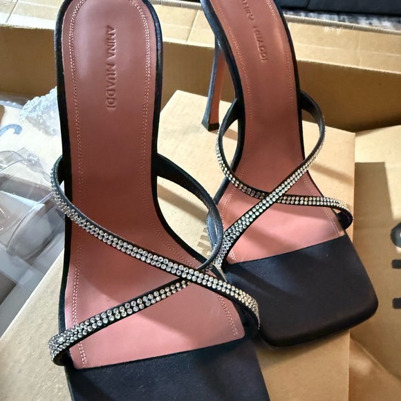 Step out in style with these stunning black heels from , featuring elegant rhinestone straps. Perfect for any glamorous occasion.