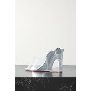Wedge heel measures approximately 95mm/ 4 inches -Clear PVC