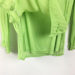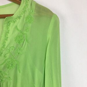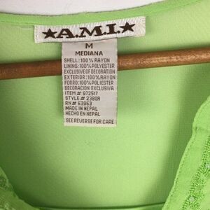 Gently worn AMI sheer neon tunic top with build in cami. Embellished front and sleeves, please note small hole in sleeve. Sheer. Please don’t hesitate to ask me for any details on this piece!